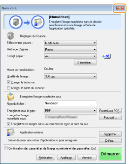 Vous ne pouvez pas numériser tant que l'écran de configuration de MF Toolbox est affiché. Fermez l'écran avant de lancer la numérisation.