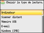 La procédure visant à "numériser un document et à l'enregistrer sur un ordinateur" ne peut être réalisée que lorsque vous numérisez un document à partir de l'appareil. Lors de la numérisation, vous indiquez l'ordinateur sur lequel les documents seront enregistrés, vous spécifiez si vous numérisez les documents en couleur ou en noir et blanc, vous signalez le format dans lequel vous enregistrez les documents (PDF ou JPEG) ainsi que d'autres paramètres.