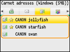 Les dossiers partagés faisant office de destinataires se limitent aux destinataires enregistrés dans le carnet d'adresses. En l'absence de destinataires dans ce dernier, enregistrez des destinataires avant de numériser des documents vers les dossiers partagés.