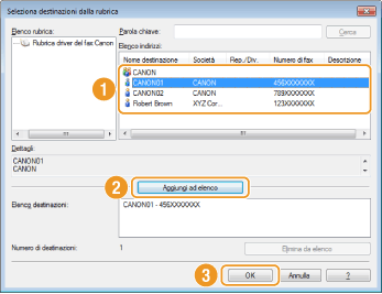 Selezionare una destinazione, quindi fare clic su [Aggiungi ad elenco]