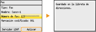 Consulte los pasos del 3 al 8 en Especificación de destinos en un servidor LDAP (fax) para obtener información sobre el procedimiento.