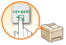 키를 사용하여 즐겨찾기 저장 수신인, 스캔 종류 및 파일 형식을 사전 설정할 수 있습니다. 문서를 넣고 해당 키 중 하나를 누르면 스캔됩니다.