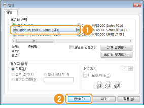 팩스 드라이버를 선택하고 [인쇄]를 클릭합니다.