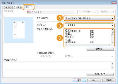 송신하는 문서에 표지를 첨부할 수 있습니다. 팩스 드라이버에서 사전 설정된 3개의 표지 중에서 선택하거나 사용자정의 표지를 만드십시오. 자세한 내용을 보려면 팩스 드라이버 화면에서 [도움말]을 클릭하십시오.