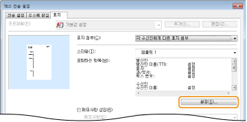 표지에 포함할 항목을 표시합니다. 포함할 항목을 변경하려면 [설정]을 클릭합니다.