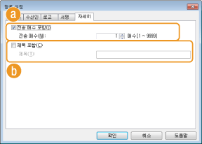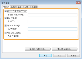 송신하는 매수를 표지에 포함하려면 이 확인란을 선택하고 [전송 매수 포함]에서 매수를 지정합니다. 송신 매수는 자동으로 카운트되지 않습니다. 여기에 지정된 값은 표지에 포함됩니다.