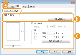 각 설정을 지정합니다. 다음 화면은 [로고] 탭이 선택된 경우의 예를 보여줍니다.