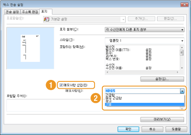 "긴급함" 및 "기밀"과 같은 메모를 사용할 수 있습니다. 목록에서 메모를 선택하는 대신 [메모사항]에 직접 문자를 입력할 수도 있습니다.