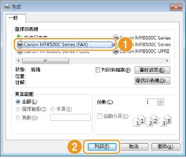 選擇您的傳真驅動程式,然後按一下 [列印]。
