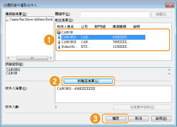 選擇接收者,然後按一下 [新增至清單]