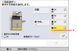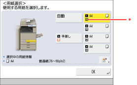 それぞれの給紙箇所を用紙カセット自動選択の対象にするかどうかを、機能ごとに設定できます。工場出荷時は、手差しトレイが「OFF」に、他はすべて「ON」に設定されています。(→機能ごとに給紙箇所を自動で選択する)