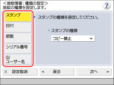 印字の種類に任意入力を選択したとき、入力した文字列は保存されません。[地紋情報]使用時に同じ文字列を印字したいときは、[登録]を押して文字列を登録してください。