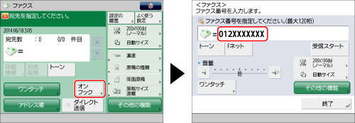 ワンタッチボタンを選択して相手先の電話番号やファクス番号を指定することもできます。