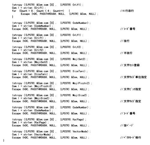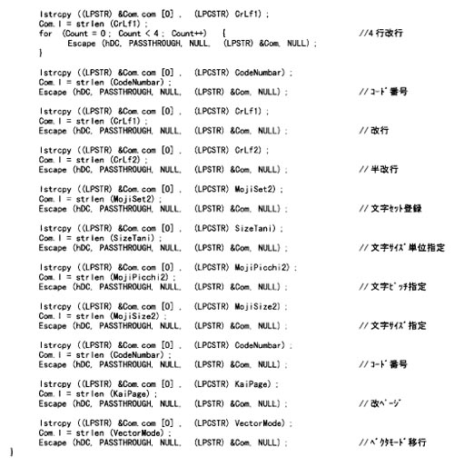 LIPSモードで、「A1234567890A」のNW-7のバーコードとOCR_B文字でコード番号を印刷する場合。(メインプログラムは「VC++用共通サンプルメインプログラム」を参照)