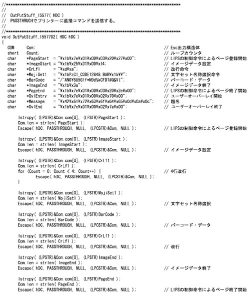I5577モードでドットフォントを使用し、EAN-128のバーコードを印刷する場合。(メインプログラムは「VC++用共通サンプルメインプログラム」を参照)