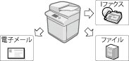 スキャナー部で取り込んだ紙文書を、Eメール、Iファクスを利用して他の人に配布できます。文書のやりとりが効率的になります。また、Eメールや、FTP、SMB、WebDAVなどのファイルサーバーに送信すると、紙文書が電子化されるので、コンピューターでの閲覧やデータ管理にご利用いただけます。