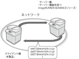 本製品はクライアント機として、ネットワーク上のサーバー機にアクセスして、サーバー機のアドレス帳から宛先を検索/指定できます。