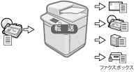 受信したIファクス文書をプリントせずに、システムボックスに保存するように設定できます(メモリー受信)。システムボックスにメモリー受信された文書は、相手先やページ数などの詳細情報を確認したあと、好きなときにプリントしたり、別の宛先に再送信したりできます。