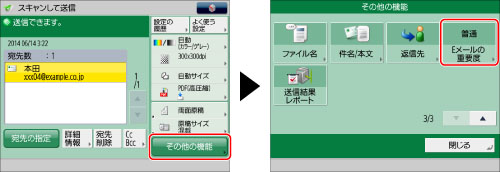 宛先を指定→[その他の機能]→[Eメールの重要度]を押す