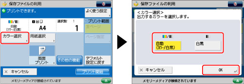 単色カラーは、ボックスのファイルをプリントする場合のみ使用できます。