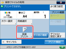 PDFファイルを選択した場合、用紙選択を「自動」に設定していて、オモテになるページとウラになるページのサイズが異なるときには、両面プリントはされずにそれぞれのサイズに合った用紙にプリントされます。両面にプリントするには、あらかじめプリントする用紙を選択してください。