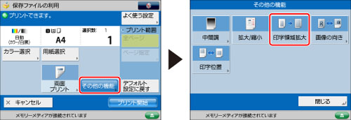 [その他の機能]→[印字領域拡大]→[閉じる]を押す