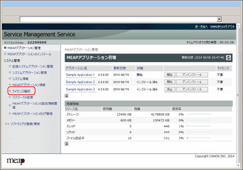 インストールされたライセンスファイルの内容は、表示できません。