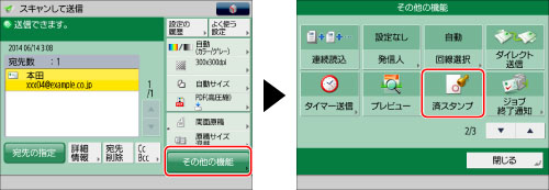 宛先を指定→[その他の機能]→[済スタンプ]を押す