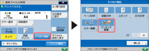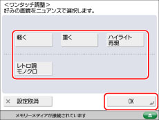 ワンタッチ調整はカラー調整を簡便にしたものです。このため、ワンタッチ調整を行うと、カラー調整での設定も変化します。