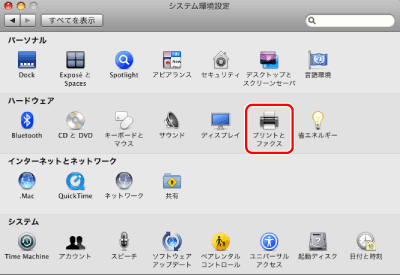[システム環境設定]を開く→[プリントとスキャン](または[プリントとファクス])をクリック