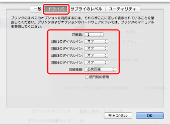 [ドライバ]をクリック→本体に装着されているオプションを設定