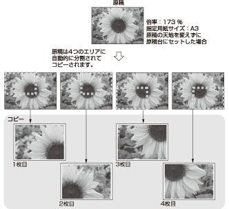 選択した出力枚数は目安の数値になります。原稿と用紙のサイズ、拡大したい大きさの組み合わせによって、最適な出力枚数が指定した枚数以下になる場合は、指定枚数以下の最適な枚数で出力されます。