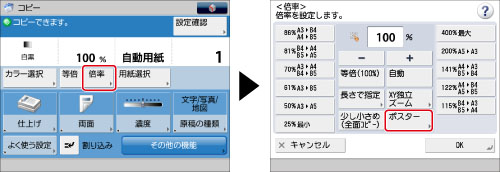 設定を解除するには、[倍率]→[ポスター]→[設定取消]を押します。