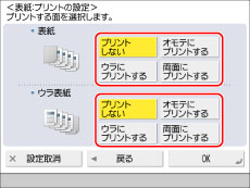 表紙、裏表紙で[プリントしない]を選択すると、手順3で選択した用紙カセットから表紙、裏表紙として用紙が給紙されます。