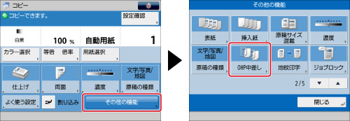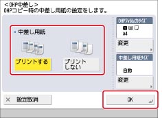 [OHP中差し]は、フィニッシャーを装着していても、[仕上げ]と組み合わせた設定はできません。