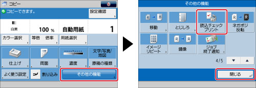 [その他の機能]→[読込チェックプリント]→[閉じる]を押す