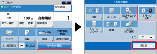 [その他の機能]→[ネガポジ反転]→[閉じる]を押す