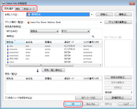 お使いのOS、ファクスドライバーのバージョンによって画面が異なることがあります。