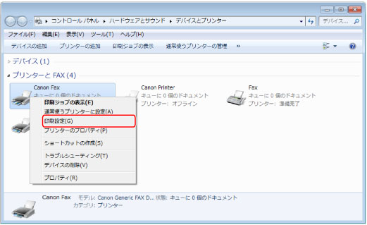 設定]→[コントロールパネル]→[デバイスとプリンターの表示]をクリックまたはタップします。Windows Vista/Server 2008の場合は、[