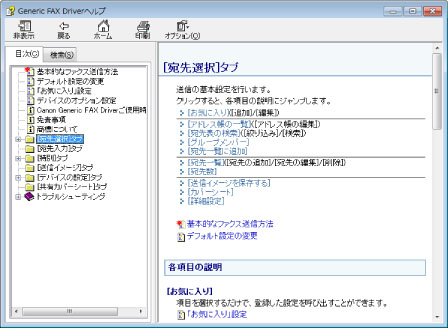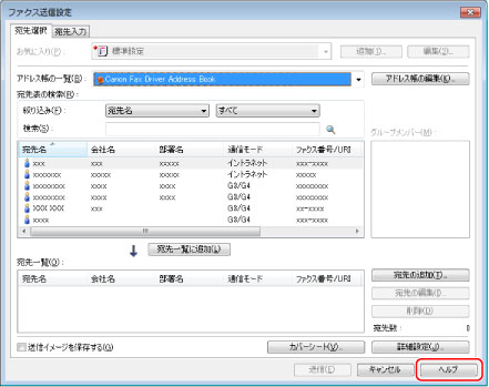 ファクスドライバー画面の[ヘルプ]をクリックすると、ヘルプが表示されます。