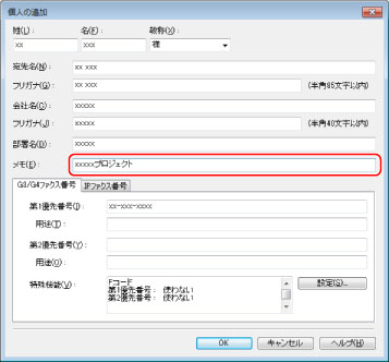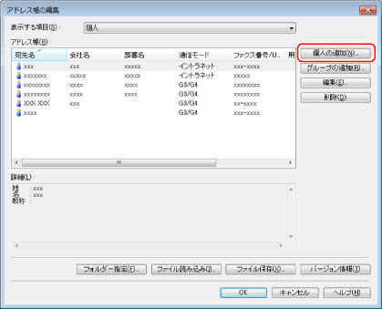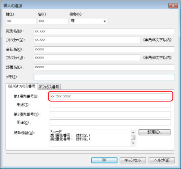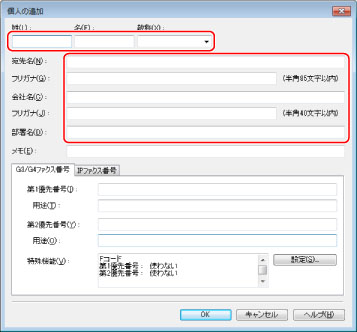 すでに登録された個人のアドレスも編集できます。詳しくは、ファクスドライバー画面の右下の[ヘルプ]をクリックして、ヘルプを参照してください。
