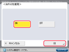 [AirPrintを使用する]にチェックマークをつけると、以下の設定値も[ON]になります。