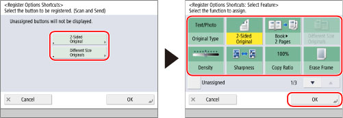 Press a shortcut button → select the setting to be registered in the button → press [OK].