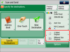 You can register shortcut keys to display on the Send screen. You can register up to two desired buttons from [Options].