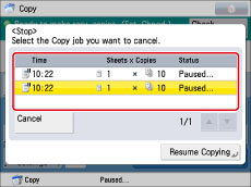 Press [Resume Copying] to resume the remaining jobs.