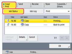 Press [Copy/Print] → [Job Status].