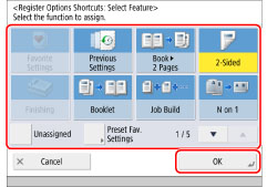 Press [Preset Fav. Settings] → select assigned Favorite Settings → press [OK].