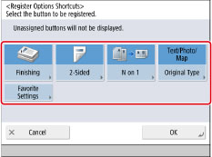 You can create shortcuts to frequently used functions in [Options]. You can also create shortcuts to [Favorite Settings]. For information on favorite settings, see