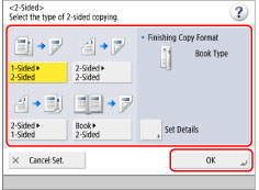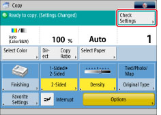 Set the desired copy modes → press [Check Settings].