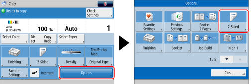2-Sided], if there are an odd number of originals, the back side of the last copy is left blank. (The machine's counter does not count the blank page as a copy.)If you use [1-Sided